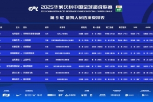 體育資訊4月25日訊 中超官方公布第9輪裁判安排,顧春含執(zhí)法泰山vs申花,麥麥提江執(zhí)法浙江隊(duì)vs青島西海岸。