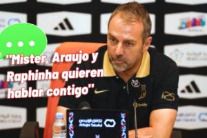 馬卡報(bào)表示,在弗里克正分析與皇馬的比賽的時(shí)候,拉菲尼亞和阿勞霍要求和教練緊急會(huì)面。