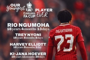 體育資訊1月11日訊?足總杯第3輪對(duì)陣阿克靈頓,利物浦小將恩古莫哈首發(fā),他以16歲4個(gè)月13天的年齡成為代表紅軍在足總杯出戰(zhàn)的最年輕球員。