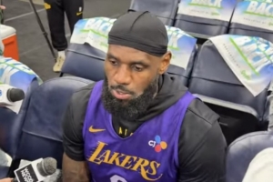 體育資訊4月26日訊 今日,湖人前鋒詹姆斯在投籃訓(xùn)練后接受了采訪。