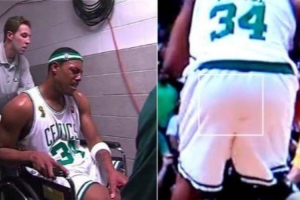 2008年凱爾特人vs湖人的總決賽G1,在第三節(jié)還剩7分左右時,皮爾斯倒在底線附近,雙手捂著膝蓋,表情痛苦,被隊友和隊醫(yī)架出場。在球員通道中,皮爾斯坐上了輪椅,但最后他重返賽場,TD花園爆發(fā)出了震耳欲聾的歡呼聲,他也砍下22分助隊取得開門紅。
