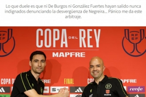 體育資訊4月26日訊 在國(guó)王杯決賽的國(guó)家德比前,主裁判德布爾戈斯在新聞發(fā)布會(huì)上哭訴。阿斯報(bào)主編龍賽羅發(fā)文談及此事。