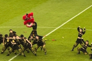 體育資訊4月26日訊 今天深圳新鵬城主場對陣大連英博的賽前,進(jìn)行了傳統(tǒng)的舞獅表演。