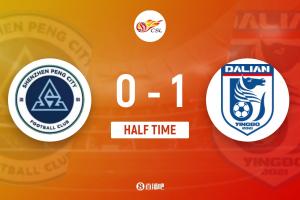 上半場(chǎng)比賽結(jié)束,深圳新鵬城0-1大連英博。