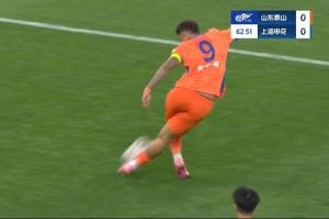 比賽第63分鐘,克雷桑邊路連過三人插花腳傳中,謝文能頭球沖頂偏出,場上比分泰山0-0申花。