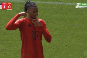 體育資訊04月26日訊 德甲第31輪,拜仁慕尼黑vs美因茨。比賽第40分鐘,凱恩中場策動,萊默爾助攻,奧利塞內切低射近角破門,拜仁2-0領先!