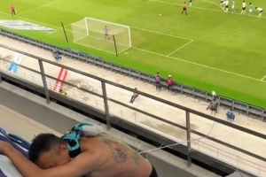 體育資訊4月27日訊 在大連英博客場(chǎng)與深圳新鵬城的比賽中,一位領(lǐng)頭的遠(yuǎn)征球迷甚至不敢看馬萊萊主罰的點(diǎn)球。