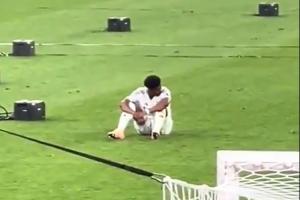 賽后有球迷拍到瓊阿梅尼一個人坐在球場內(nèi),有些沮喪。