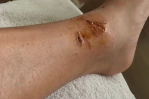 體育資訊4月27日訊 今天,海港后衛(wèi)李帥更新社媒,曬出了自己腳踝的傷口照。