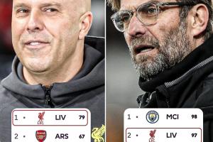如今,斯洛特只需帶領(lǐng)利物浦拿到80個(gè)積分,就足以確保奪冠。目前利物浦本賽季的最高理論積分為94分。