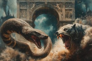 國(guó)米官方社媒曬出了為此役制作的海報(bào),代表國(guó)米的靈蛇與代表羅馬的巨狼展開(kāi)對(duì)決。