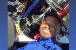 法蒂此役擔任替補沒有出場,當地時間第二天早上,他在社交媒體上轉發(fā)與拉菲尼亞、萊萬的合照,身邊擺著冠軍獎杯,配文:“早上好?!?/p>