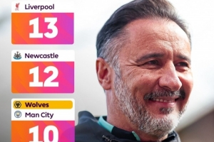 佩雷拉去年12月中旬上任狼隊(duì)帥位,當(dāng)時(shí)狼隊(duì)2勝3平11負(fù)積9分,排名英超倒數(shù)第2。自佩雷拉上任以來,狼隊(duì)英超已經(jīng)取得10場勝利,同期僅次13勝的利物浦和12勝的紐卡,與曼城并列第三。