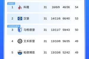 體育資訊04月27日訊 德乙第31輪,前二球隊(duì)全部輸球,榜首科隆0-1不敵漢諾威96,漢堡1-2不敵卡爾斯魯厄,前六球隊(duì)集體不勝,因此科隆和漢堡仍繼續(xù)領(lǐng)跑。