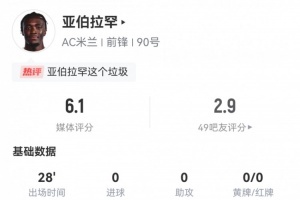 體育資訊1月12日訊?本輪意甲,米蘭1-1卡利亞里。此役亞伯拉罕替補(bǔ)登場(chǎng)28分鐘兩次錯(cuò)失良機(jī),球員全場(chǎng)重點(diǎn)數(shù)據(jù)如下↓