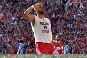 進球后的加克波激動脫掉上衣慶祝,露出打底T恤,T恤上英文:I BELONG TO JESUS。這一幕令人似曾相識,曾經(jīng)的米蘭王子卡卡也有相同款式的T恤。