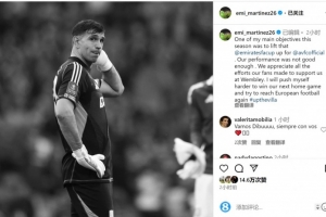 維拉門(mén)將馬丁內(nèi)斯賽后在社交媒體上寫(xiě)道:“本賽季我的主要目標(biāo)之一就是為維拉贏得足總杯,但我們的表現(xiàn)不夠好。非常感謝球迷在溫布利球場(chǎng)對(duì)我們的支持。我會(huì)更加努力,爭(zhēng)取贏得下一場(chǎng)主場(chǎng)比賽,努力再次躋身歐冠賽場(chǎng)?!?/p>