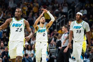 體育資訊4月28日訊 NBA季后賽東部首輪G4,步行者半場63-52領先雄鹿。