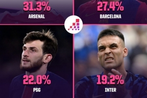 體育資訊4月28日訊 Opta超級(jí)計(jì)算機(jī)預(yù)測(cè)了歐冠四強(qiáng)球隊(duì)奪冠的概率,阿森納31.3%居首,巴薩27.4%次席。
