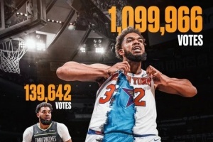 改穿尼克斯隊(duì)球衣后,唐斯場均能轟下25.3分14個(gè)籃板球和3.3次助攻,得分比上賽季在森林狼多了3.5分,籃板球更是多了5.7個(gè),目前正在領(lǐng)跑聯(lián)盟總籃板榜,投籃命中率是生涯新高的55.2%,三分球命中率同樣是生涯新高的45%,個(gè)人效率值也從18.8躥升到了26.9。在全明星投票的第二輪結(jié)果中,唐斯位列東部前場第三,個(gè)人得票數(shù)同比增長了6.75倍!