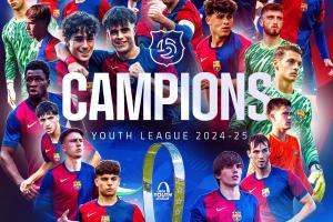 本賽季,巴薩U19青年隊收獲滿滿,他們奪得了青年國王杯、青年聯(lián)賽、青年歐冠的三冠王。