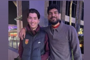 體育資訊1月12日訊?最近,亞泰新援奧莫伊胡安弗在社媒曬出了他與侯永永的合影。