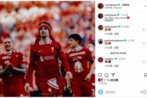 利物浦中場(chǎng)柯蒂斯-瓊斯社媒曬出慶祝奪冠的照片,并寫道:“沒有地方比得上家。”