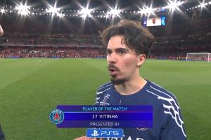 體育資訊4月30日訊 巴黎在歐冠半決賽首回合客場1-0擊敗阿森納,全場比賽表現(xiàn)出色的中場球員維蒂尼亞當(dāng)選最佳球員。