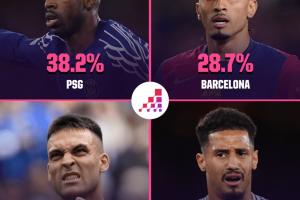 目前還未賽的巴薩28.7%和國米18.1%分列第2、第3,阿森納則是15.0%墊底。