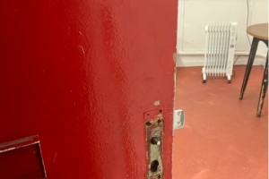 目前主隊更衣室修復(fù)了此前漏水的屋頂,但地毯下并沒有地暖,只能打開一個加熱器,因為如果打開兩個有可能引發(fā)短路;房間甚至連門把手都斷了。
