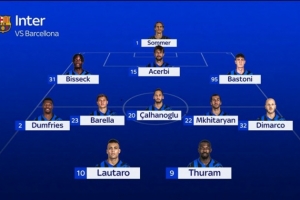 體育資訊4月30日訊 北京時(shí)間明天凌晨,國(guó)米將在歐冠半決賽首回合比賽中客場(chǎng)對(duì)陣巴薩。記者M(jìn)atteo Barzaghi透露了國(guó)米此役的首發(fā)陣容,圖拉姆復(fù)出首發(fā)。