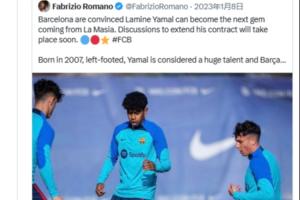 羅馬諾回復(fù)的是網(wǎng)友的留言。2年前羅馬諾在社媒報(bào)道亞馬爾的新聞,當(dāng)時(shí)羅馬諾發(fā)文:“巴塞羅那堅(jiān)信亞馬爾能夠成為拉瑪西亞的下一顆明珠,他的續(xù)約談判即將啟動。 ?????? 亞馬爾出生于2007年,是一名左腳球員,他被認(rèn)為是一名超級天才,巴薩希望以最佳方式掌握他的合同狀況。”