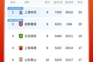 體育資訊05月01日訊 中超第10輪今日6場戰(zhàn)罷,最新積分榜形勢如下。國安擊敗海港升至前三,海港、泰山同積17分分列4、5位。浙江、津門虎和英博分列6-8名。