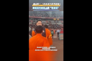 中超第10輪齊魯?shù)卤龋┥疥犞鲌?-1戰(zhàn)平青島海牛,兩隊中有不少曾經(jīng)并肩作戰(zhàn)的球員,賽后雙方球員上演了“老友記”。