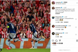 卡塞米羅社媒曬出慶祝進球的照片,配文:“今晚的勝利很棒,但還有次回合比賽。最大的尊重,這就是歐戰(zhàn)!”