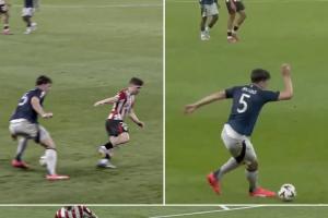 體育資訊05月02日訊 歐聯(lián)杯半決賽首回合,曼聯(lián)客場(chǎng)3-0大勝畢爾巴鄂競(jìng)技,一只腳已踏入決賽。上半場(chǎng)曼聯(lián)的首粒入球來(lái)自馬奎爾的一次邊路晃動(dòng)傳中,引發(fā)熱議。
