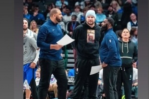 杜德里寫道:“教練@東契奇@山姆高德(運(yùn)球大師,目前是獨(dú)行俠助教)!”