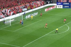 第3分鐘,申花反擊機(jī)會,米內(nèi)羅右路外道超車,殺入禁區(qū)右側(cè),隨后小角度打門被劉殿座撲出。