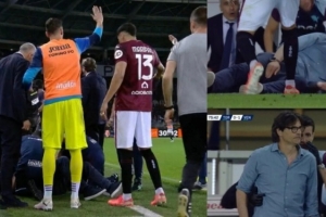 今天凌晨進行的第34輪意甲聯(lián)賽,都靈主場1-1戰(zhàn)平威尼斯。比賽第75分鐘,都靈獲得一個點球。場邊的都靈主帥瓦諾利也許是太過激動,突然頭暈倒地。這讓人們非常擔心,兩隊的隊醫(yī)都上前幫助瓦諾利。而在接受初步檢查后,瓦諾利起身向全場揮手致意,表示自己沒問題。