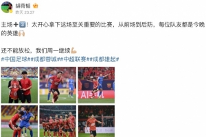 賽后蓉城后衛(wèi)胡荷韜更新社媒,曬出比賽照并配文寫道:“主場+3!太開心拿下這場至關重要的比賽,從前場到后防,每位隊友都是今晚的英雄!還不能放松,我們周一繼續(xù)!”