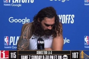 賽后,亞當(dāng)斯接受了記者采訪。他看著數(shù)據(jù)表說道:“我就搶了三個(gè)進(jìn)攻籃板嗎?那太糟糕了?!?/p>