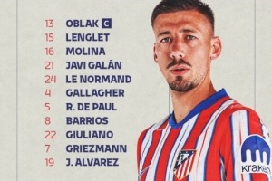馬競(jìng)首發(fā):13-奧布拉克、15-朗格萊、16-莫利納、21-加蘭、24-勒諾爾芒、4-加拉格爾、5-德保羅、8-巴里奧斯、22-朱利亞諾-西蒙尼、7-格列茲曼、19-阿爾瓦雷斯