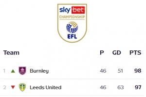 利茲聯(lián)第18分鐘丟球,比分變?yōu)?-0,實時積分利茲聯(lián)被伯恩利反超,按照目前結(jié)果伯恩利將奪冠!