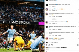 德布勞內(nèi)也在個(gè)人社媒曬出本場(chǎng)慶祝照片,配文寫道:“積分榜上再添三分!”