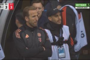 本場比賽對陣萊比錫,拜仁在0-2的情況下連扳三球,最后時刻凱恩從看臺下場準備奪冠,但拜仁最后1秒鐘被絕平!