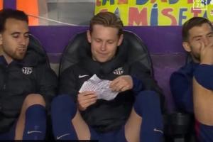 DAZN拍到德容在替補(bǔ)席拿著巴拉多利德球迷扔的假鈔看,還笑著表示要揣兜里。