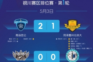 體育資訊5月4日訊 中冠銀川賽區(qū)排位賽第一輪的比賽,青海昆侖2-1擊敗菏澤曹州北體大,鄂爾多斯曼森0-0戰(zhàn)平新疆金盾。