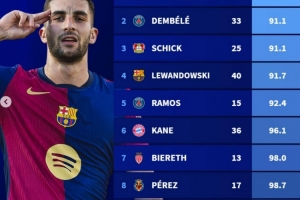 體育資訊5月4日訊 德轉(zhuǎn)盤點了本賽季五大聯(lián)賽球員在各項賽事中進(jìn)球效率榜(至少打進(jìn)10球),其中費蘭每90.3分鐘一球居首,以下為具體榜單: