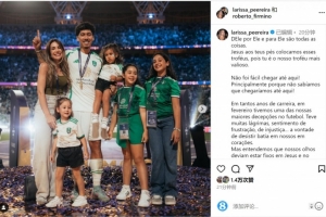 菲爾米諾本賽季出戰(zhàn)12場亞冠比賽6球7助,當選亞冠最佳球員。菲爾米諾妻子拉莉薩社媒曬出一家合照,慶祝奪冠。
