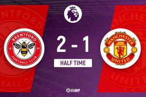 上半場傷停補時3分鐘,半場結(jié)束,曼聯(lián)暫1-2布倫特福德。